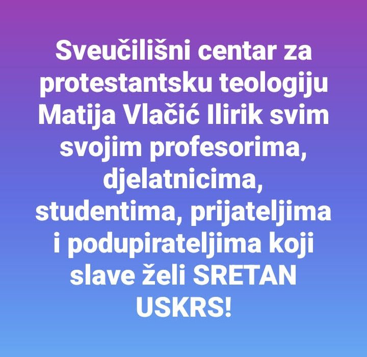 Sveučilišni centar za protestantsku teologiju Matija Vlačić Ilirik svim svojim profesorima, djelatnicima, studentima, prijateljima i podupirateljima koji slave želi SRETAN USKRS!